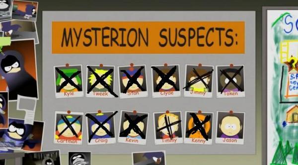 Картман - думаю обьяснять не стоит, но всё же. Слишком ширококостен, засветился в одном кадре с Мистерионом.